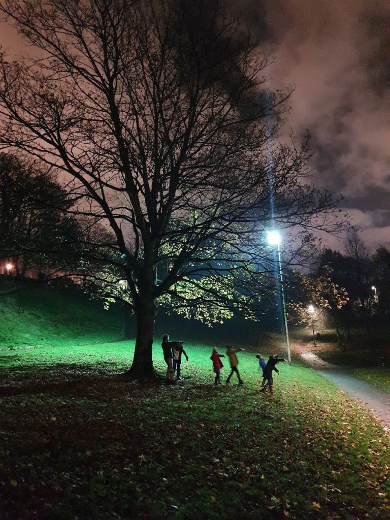 We went for a lovely dinner at Foodstory tonight. We’re not allowed to have people in our homes but we can meet people from another household at a restaurant provided our number is not more than 6 (this excludes children under 12). On the way there we met a couple of people with a cargo bike and they let me take this photo. I think the guy with the kilt is wearing it in the traditional way because he was quite concerned with his skirt when climbing in and out of the bike.
