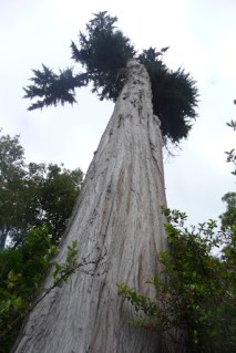 We went to Glenfalloch Gardens yesterday hoping to let the kids burn off steam on their Springfree trampoline. But when we got there we discovered there was no trampoline anymore – it was vandalised last year and not replaced. So we walked around their meandering pathways and bridges through lush bush and past streams and ponds instead. It would have been a delightful place to spend a couple of hours with interesting art to look at along the way in the Potter’s Cottage but with a 4-year-old on his bike dashing off down hills dangerously close to cliff-edges and a heffalump of a 1-year-old to push around in a pushchair, we had a quick look then left. But not before admiring their old matai tree: