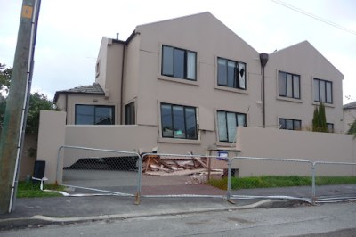 As I was driving home, I drove along Durham St North (a street in our suburb) past some modern townhouses. This three-storey block has been reduced to two. The bottom level crushed underneath: