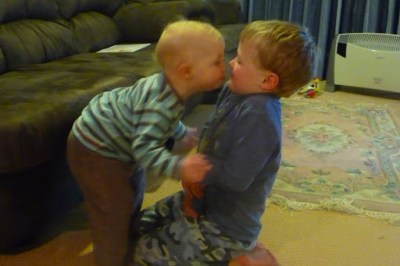 I got a cute photo of Elizabeth giving a reluctant Daniel a kiss last night: