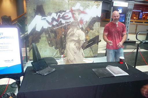The fellow in the photo below is from Weta. He was sculpting the creature to his right out of clay for all to watch. It has taken him a week so far.