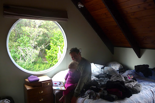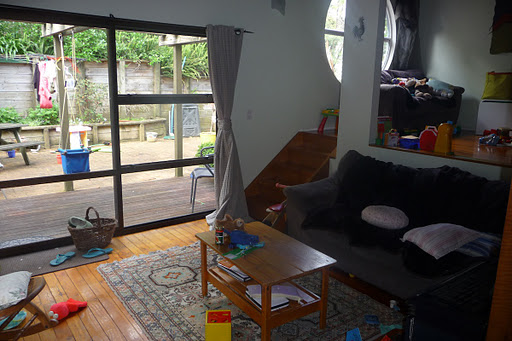I just adore our new house. It’s my *perfect* home with all the timber, sarked ceilings and enormous round windows. It has such a lovely feel to it and I feel very safe here. Earthquake-safe that is. I never felt safe in our house in Christchurch, hence the need to sleep in a caravan. I didn’t feel totally safe in our rental in Point Chevalier either but fortunately there were no earthquakes while we were there. But here, I feel very safe. The kids love it too. Daniel has a good view of the Sky Tower from his bedroom and we can see Mount Victoria in Devonport from ours.