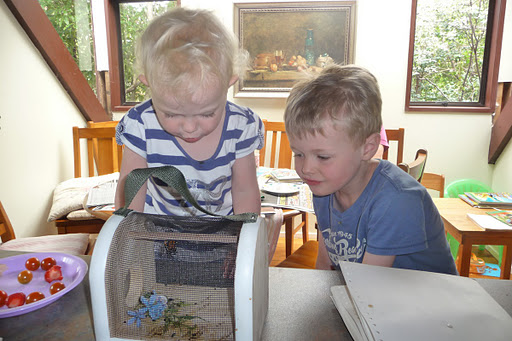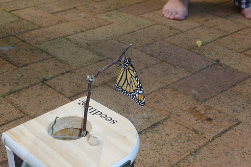 The butterfly’s wings need to stretch and dry out before it can fly so it doesn’t do terribly much straight away. The kids were both enthralled:
