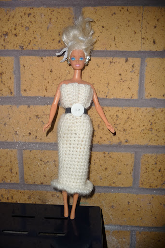 I love to crochet. I could crochet all day if given the chance. I just wish someone would pay me to do it. Yesterday I thought I’d try crocheting some barbie clothes. My first attempt: