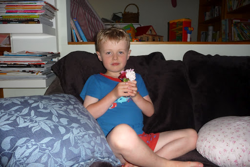I’m fond of gardening and appreciate being able to fill vases inside with flowers from the garden. Recently Daniel has started filling our vases with flowers from the garden and he manages to arrange them quite artistically. I can’t imagine many 5-year-old boys doing that! Daniel holding one of his creations:
