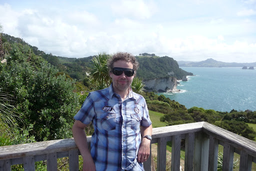 We also visited famous Hot Water beach where you can dig a hole in the sand in a geological hot spot and find hot water to make your own hot bath. We did not get to do any digging however because it can only be done within a couple of hours of low tide and we were there around high tide. I did get a photo of the beach though which was very rough and windy and generally quite an unpleasant place to be: