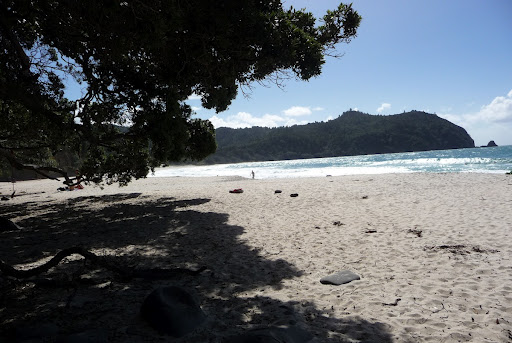 Our weekend of adventure is now over and we are back at home. Fortunately the mishaps we had at the beginning did not continue and the rest of our weekend was very nice. We stayed in a little place called Whangapoua. The nearest beach was just a short 5 minute walk away:
