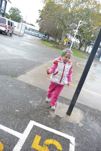 She looks quite at home in that school ground, Rachel, and that's a very cute little cloche hat she's wearing too!