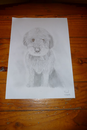 We’ve had some lovely visitors this past week. Our niece, Frances, was with us for a whole week and we all enjoyed her visit very much. She sketched a picture of Freud for us before she left. I love it! Thank you, Frances. She’s a very talented young lady.