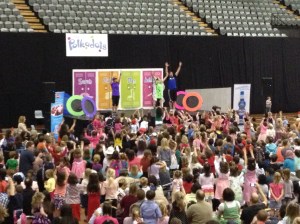 them and always sings their songs at home or in the car. When we first arrived, we somehow ended up crammed into the lobby area which really freaked Daniel out and he started crying. So we found a seat on one of the balconies away from the crowds which made him happier. But then Elizabeth got upset because she wanted to get up close to The Polkadots. You can’t please all of the children all of the time.