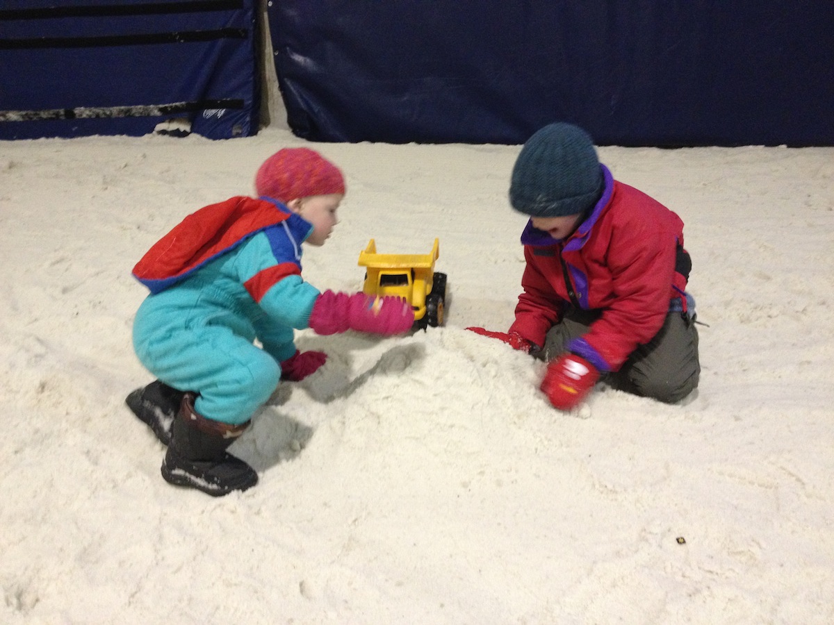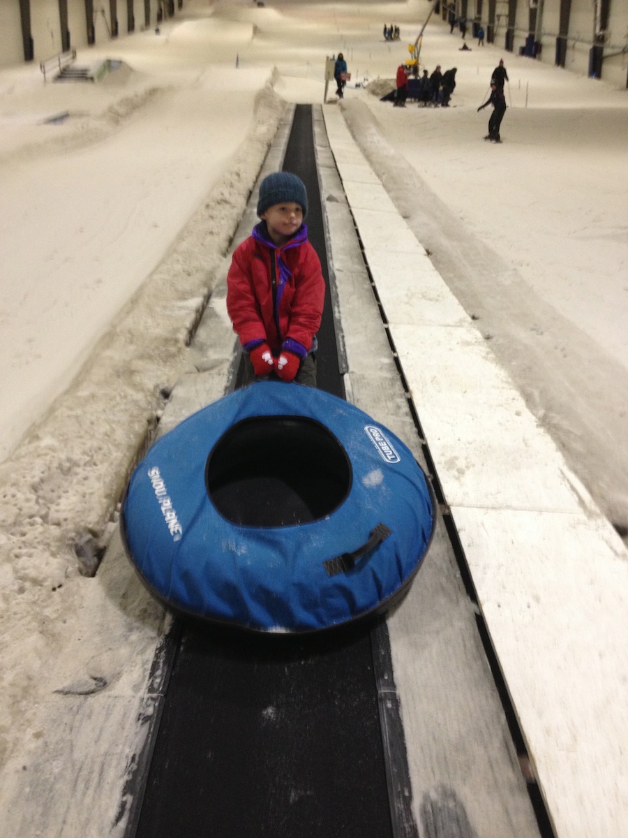 Snow Planet was terrific and both kids had a ball. Elizabeth now loves going up the magic carpet and down on the tube. The minute we get to the bottom she starts saying, “again, again”. The beach was an irritating mix of sand everywhere, sticky sunscreen needing application to 3 bodies and a too-bright sun. Give me snow over beach any day.