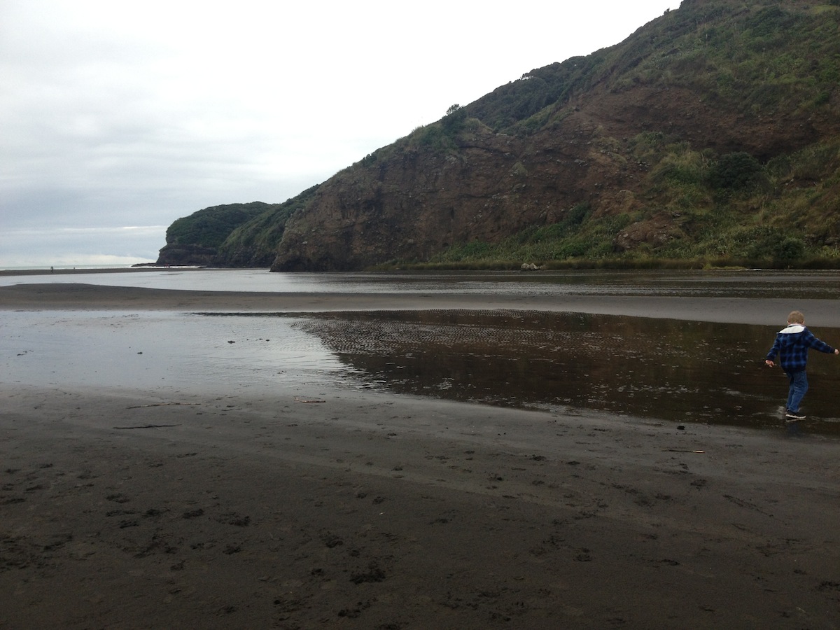 More warnings: Large waves, strong currents, slippery rocks, unstable cliffs and tsunami evacuation zone. You might wonder why we went there. But it turns out Bethells beach has the best sand-castle-making sand.