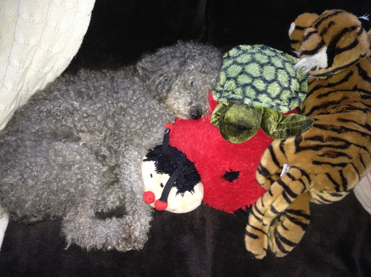 Freud was very fond of soft toys. This was sometimes problematic after the children came along because he would play with their toys and the toys usually ended up with holes in them. He played with toys right up until the very end. Just a few months ago he managed to bite a few holes in a giant toy Shrek belonging to Elizabeth. She still laughs about it. He also loved toilet rolls. He would sneak into the bathroom to look for empty toilet rolls, take them to his bed and chew and play with them for ages.