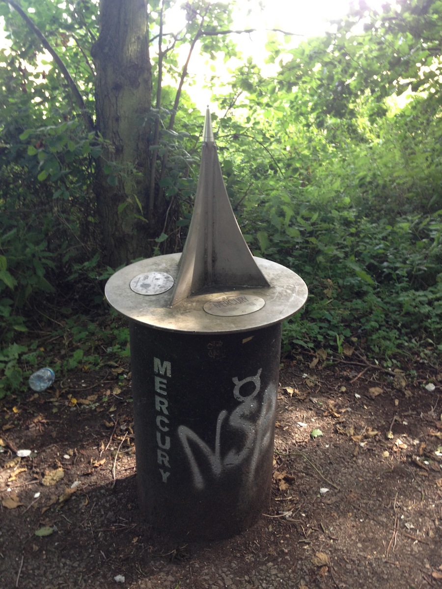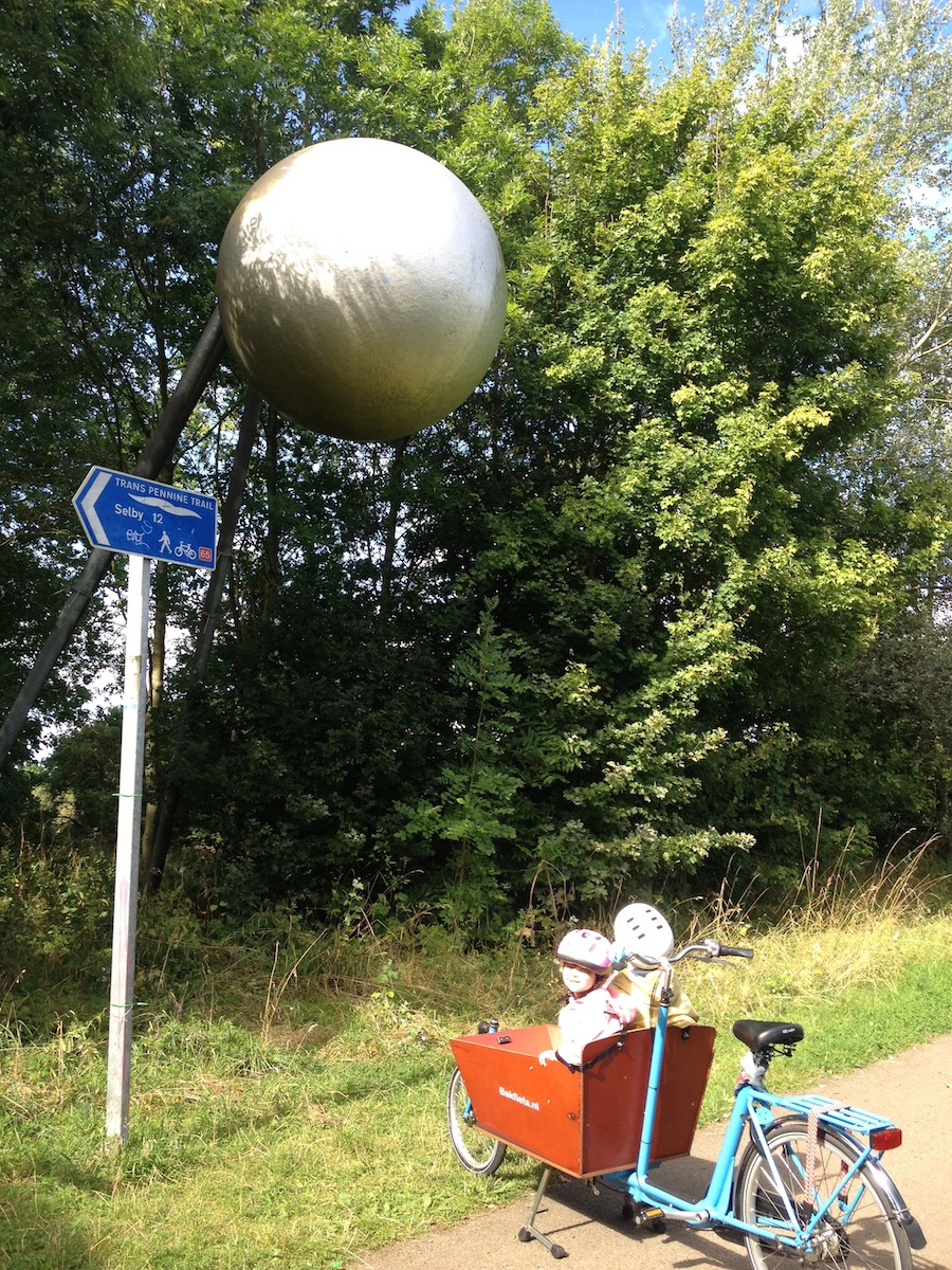 Today we cycled to the solar system, a model built to scale of our own solar system. The scale is 575 872 239 to 1 so for every 100m of bike path, we travel 57 million kilometres in space. Even the planets are built to scale which made it easy for the kids to see the hugeness of the sun compared to Mercury. Here’s the sun: