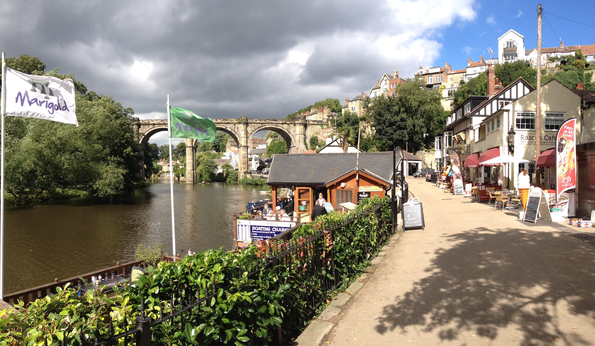 Knaresborough is built around a gorge which was carved out by glaciers at the end of the last ice age. In 1847, work began to construct a viaduct over the gorge but just before its completion in 1848, the whole thing collapsed into the river below. Fortunately no-one was killed but the lime from the cement killed all of the fish and the bridge itself completely dammed the river causing it to flood. A second bridge was started almost right away and has survived to the present day. It is now a grade II listed monument and it’s really gorgeous. The amazing thing though, especially for me, is that the construction of the viaduct was fiercely opposed at the time with one architect describing it as “one of the worst railway crimes in all England”. Personally, I think it’s beautiful and I love that we can just jump on a train and travel almost anywhere and for very little cost. For comparison, the train was cheaper for the four of us than catching the 10-minute ferry from Devonport to Auckland return.