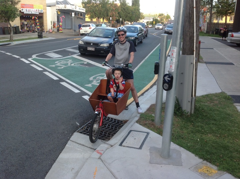 Good on your dad for taking the photo! It’s good to see another Bakfiets user complete with child passenger. Hats off to him for his bravery in cycling around Brisbane streets. ๐Ÿ™‚
