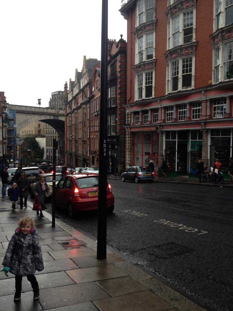 We went to Newcastle for the afternoon. It started off badly: there was rain, the children wanted to go home and we had nothing planned other than to walk around in the rain for a couple of hours before going back to York. But then things changed. First we ran into someone famous: