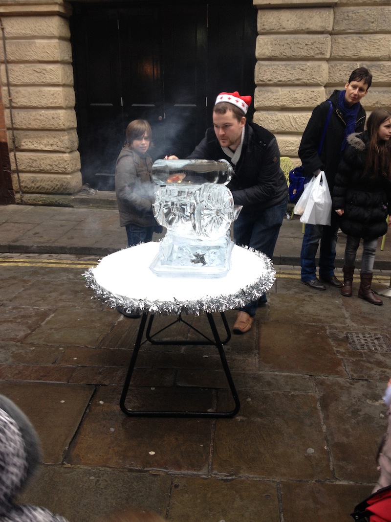 The Festival of Angels was running in York this weekend and we went to have a look today. There were sculptures made of ice, outdoor entertainment and some fake snow. I’m still waiting for some real snow but the fake stuff was enough to get three Australians very excited.