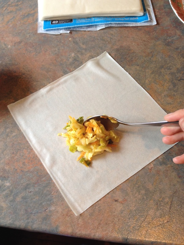 I grew up with a Thai chef and did not take as much advantage of this as I probably should have. One thing she did teach me though was how to roll spring rolls and I am very grateful for that. Spring rolls are fairly quick and easy to make and also very, very cheap. I can make 20 for less than $5. The main ingredient is cabbage and so it’s a good way to get kids to eat vegetables. My 7 year old loves them but he will not touch cabbage in any other disguise.