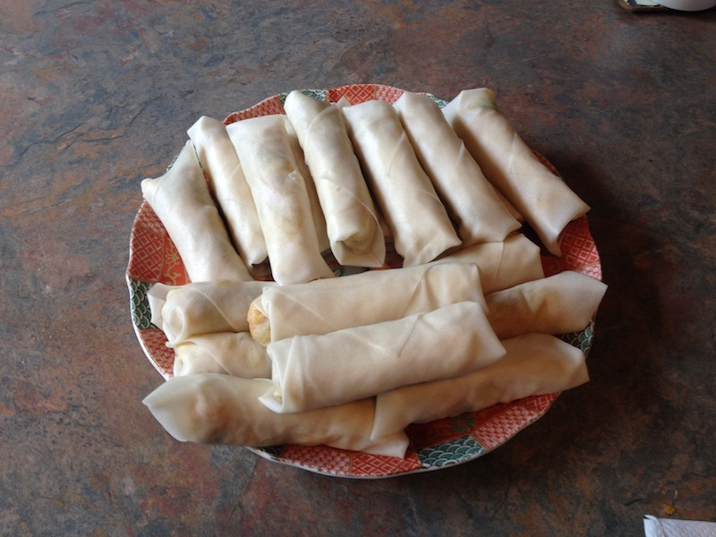 Here’s my plate of rolled spring rolls. These can be frozen if you want to make them in advance.
