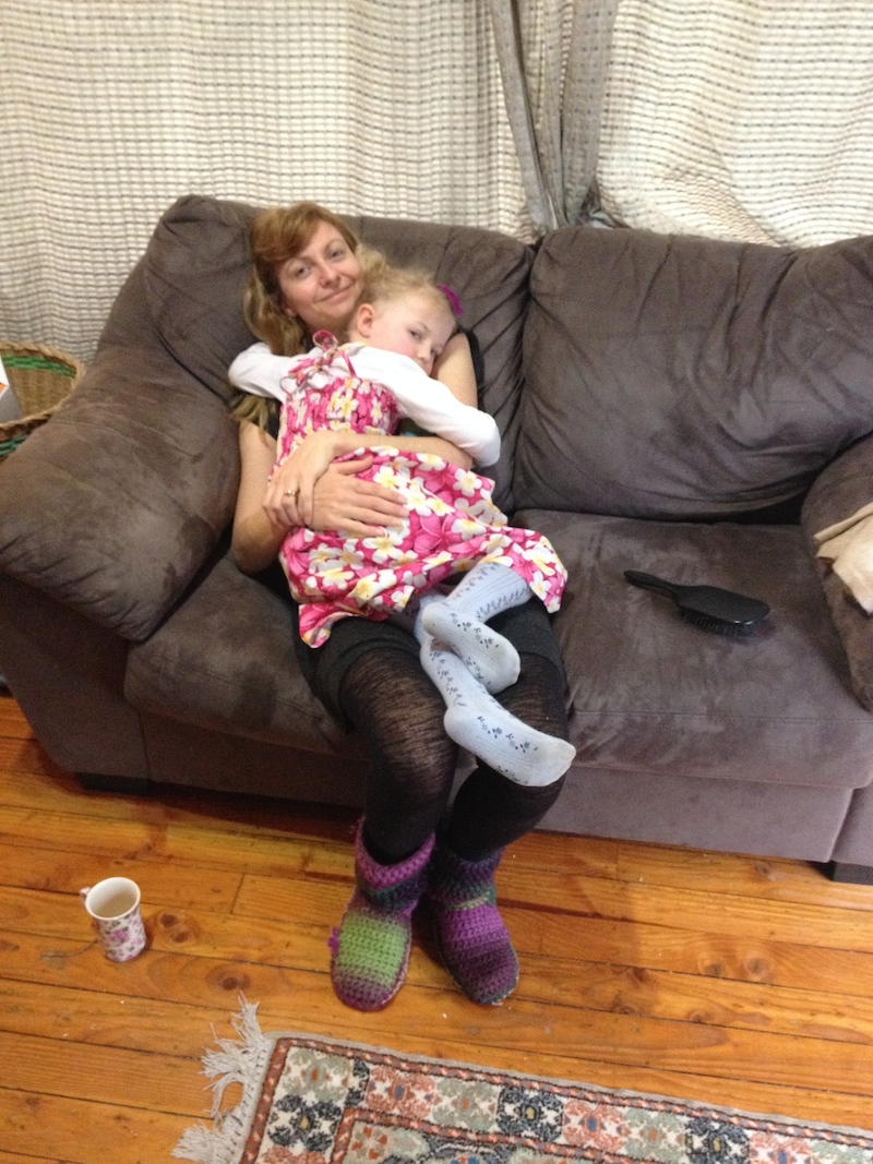 Elizabeth was very happy to see me. I can’t think why because I’m really not that great a mum. I’m just average. She looks a bit reproachful in this photo, like she’s thinking, “How dare you leave me”.