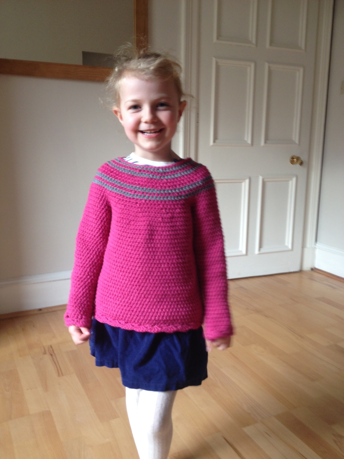 I don’t really like reading manuals or following recipes. I prefer to stick my hands in the mud and get dirty without having to follow a cookbook. One of the nice things about crochet is you can make a jumper in rounds and measure it on the body as you go. I recently completed a jumper for Elizabeth and I thought I’d photograph the process for anyone interested. It’s very easy to do once you know how.
