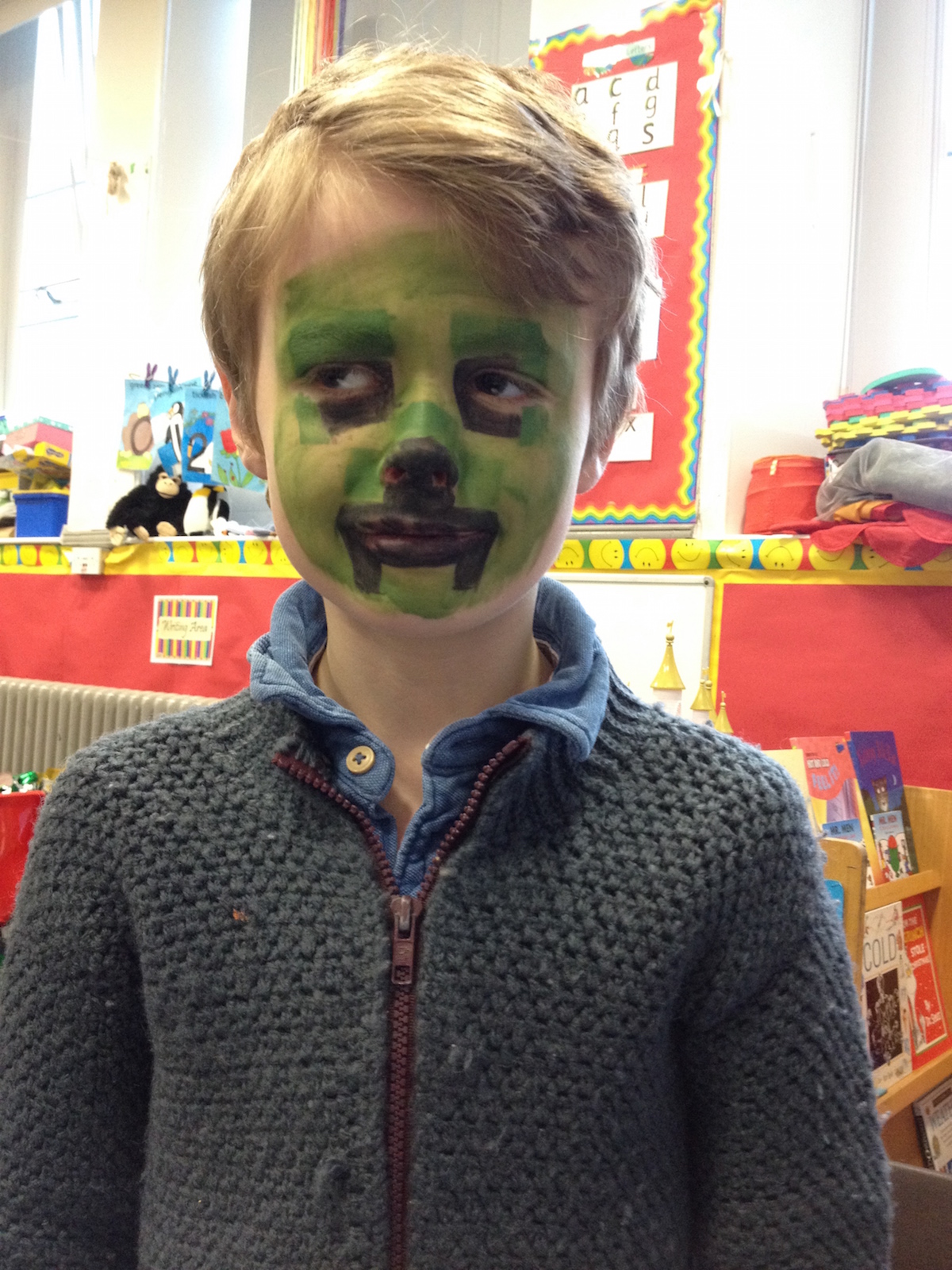 The fair was wonderful. Both the kids had their faces painted. Can anyone guess who Daniel is?