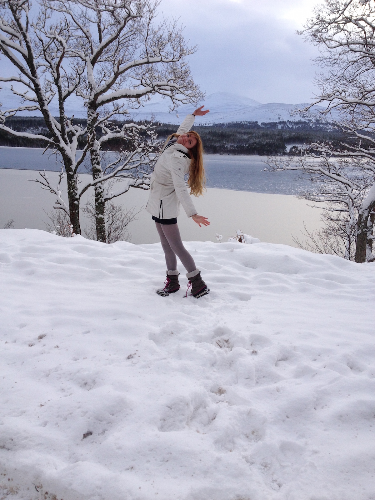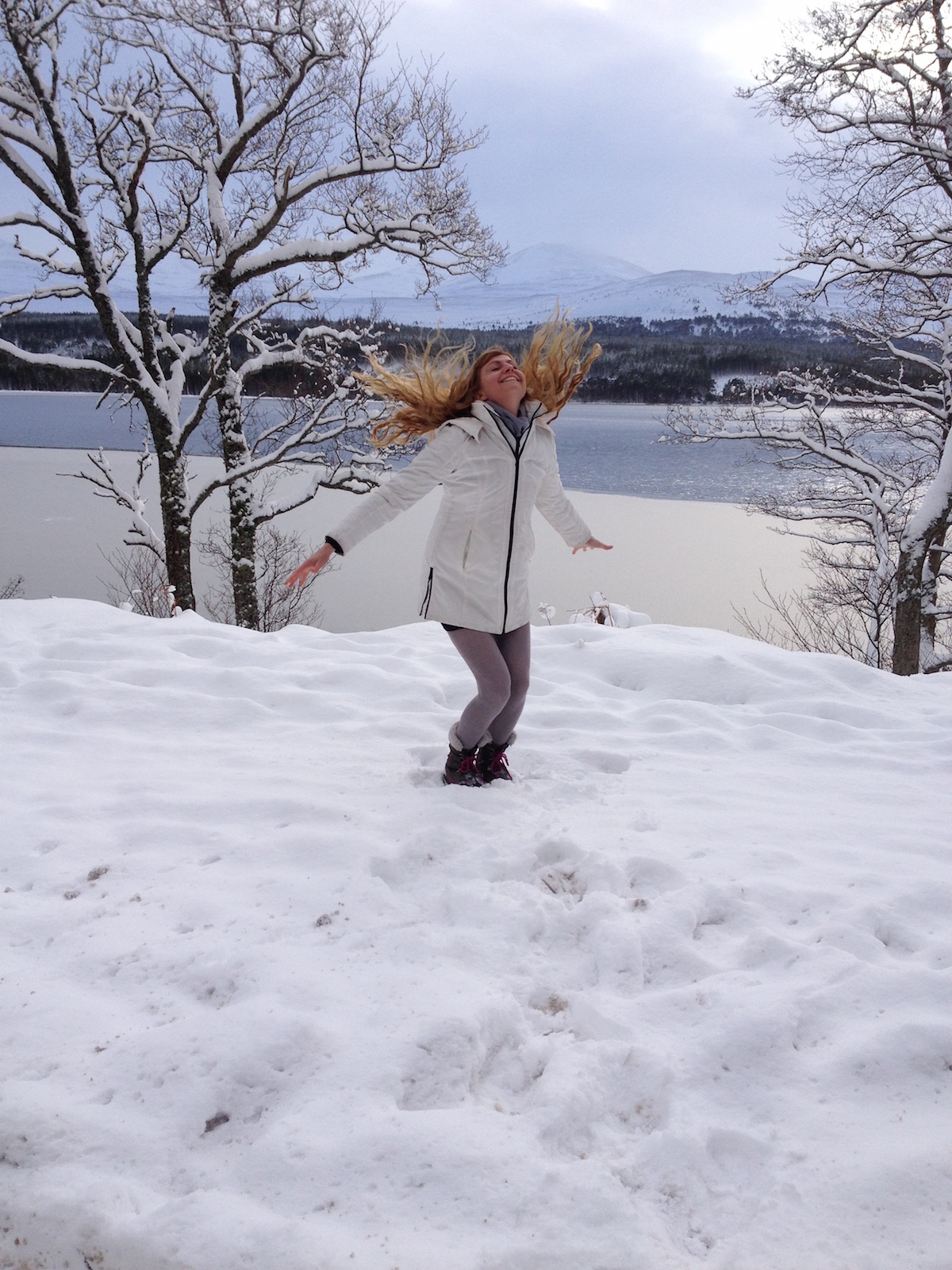 We awoke today to the loveliest day I’ve ever seen. It snowed overnight, so there was a fresh coating of the powdery stuff everywhere, and then the sun came out and the whole world seemed to sparkle. We managed to get up to Cairngorm Mountain but only just as they didn’t open the road until 11am. This meant we didn’t have enough time to take the funicular railway all the way to the top as we had a train to catch. But we did get to sample the view from the base station and it was splendid.