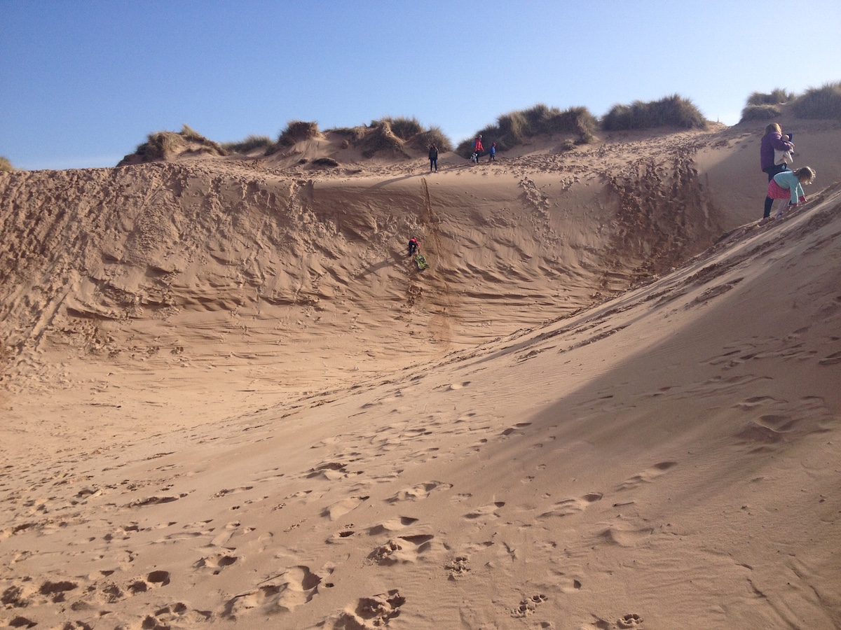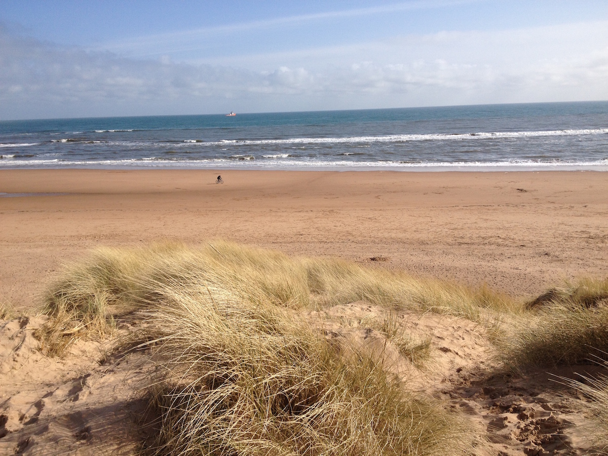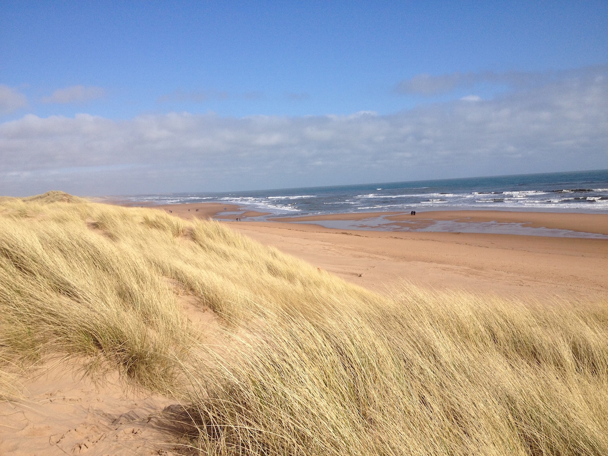 We went to Balmedie Beach which is only about 10 miles north of Aberdeen. It was beautiful. Golden sand for miles and miles and dramatic sand dunes along the shoreline. It reminded me a bit of Fraser Island in Queensland but much colder. The air temperature was about 7°C and the water temperature about 6°C.