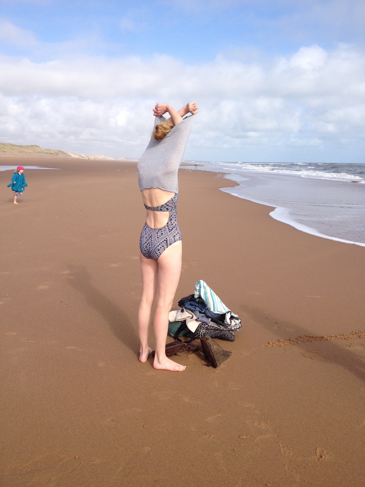 We had a superb day today. We booked one of the Co-wheels cars to try out and went to Balmedie Beach where I went for a swim in the North Sea.