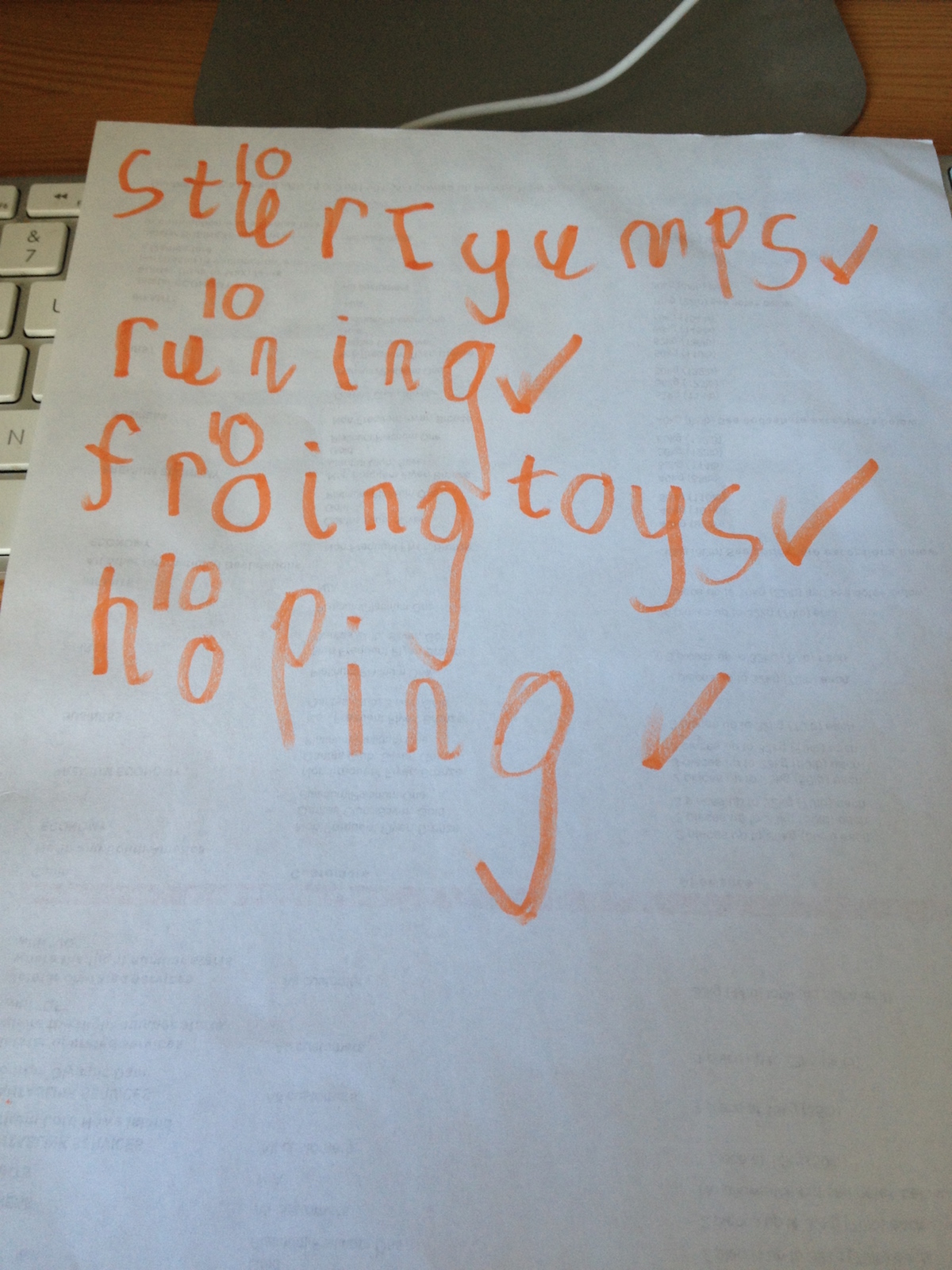 After school yesterday Elizabeth decided to do some exercise. It was her own idea and although I’m a big advocate of exercise myself, I never pressure my kids to do it. However whenever they ask me why I’m exercising I will usually say something like, “because it keeps me fit and healthy and I’ll live for longer”. Elizabeth parroted these reasons when she was doing her exercise so she must be absorbing at least some of the things I say and she even drew up an exercise plan (again all her own initiative). Here it is: