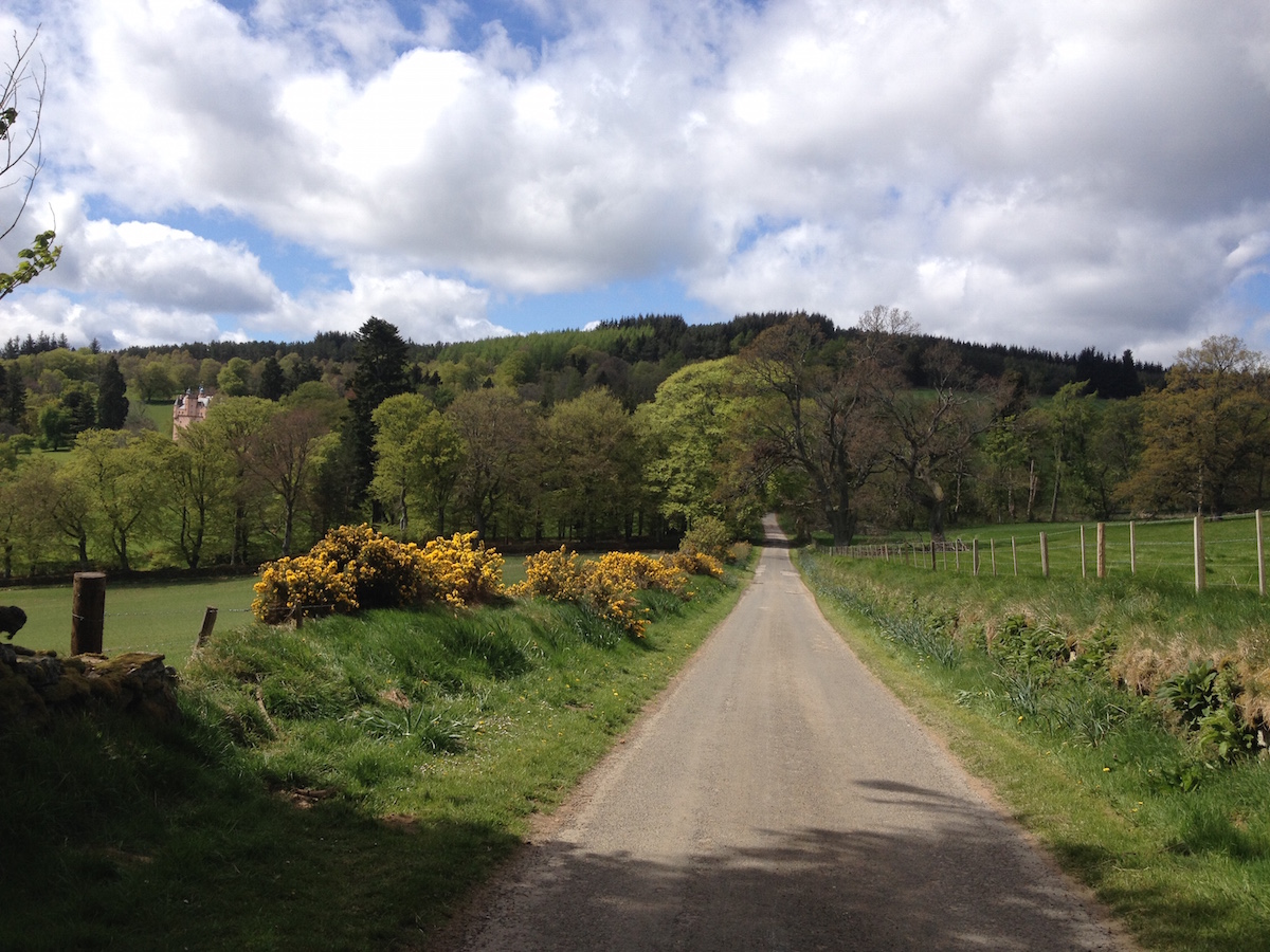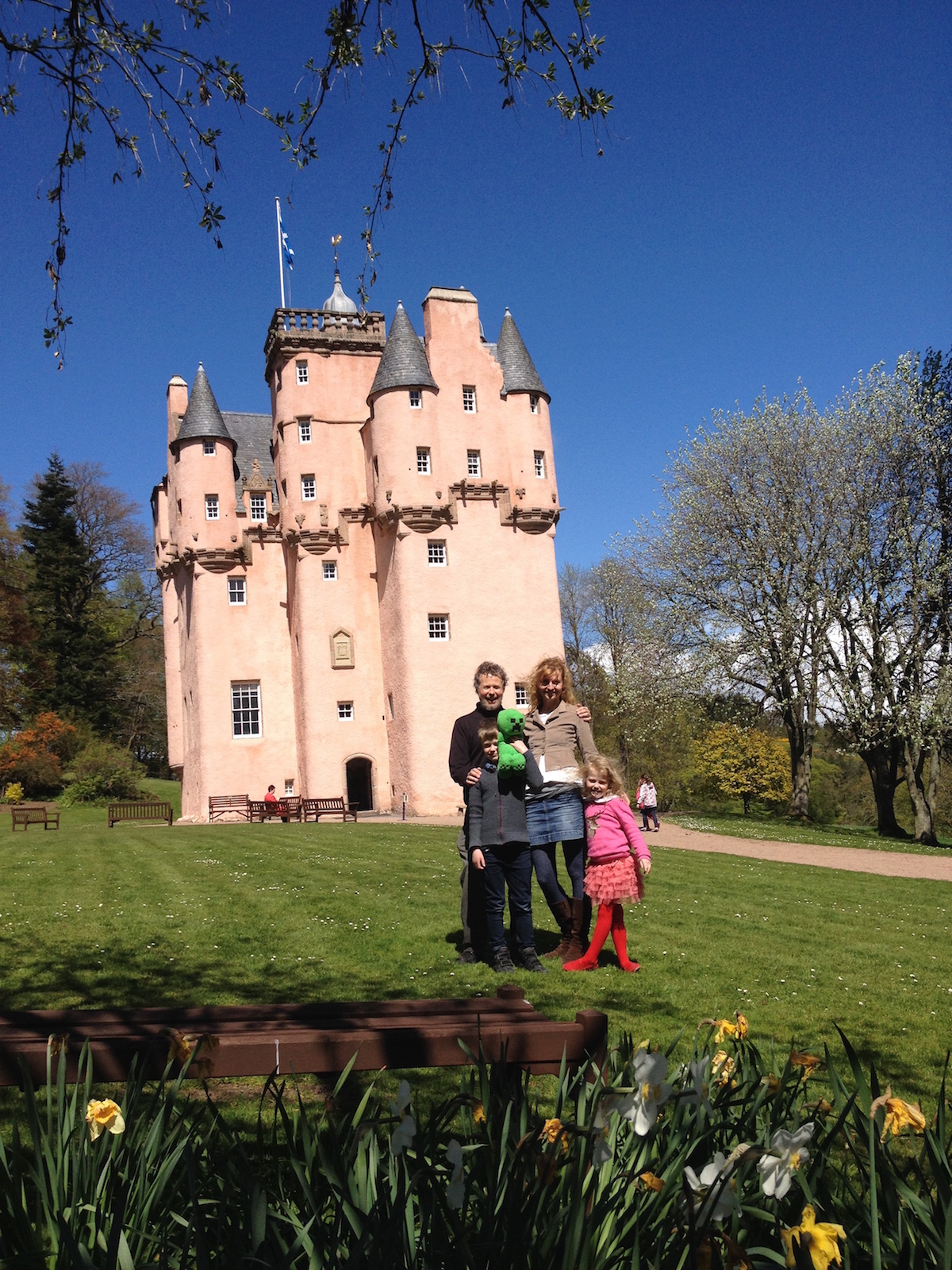 We drove out to Craigievar Castle, about 30 miles west of Aberdeen. The drive was just lovely. We drove to Banchory first and followed the same route we took before Christmas when we went to Ballater but how different it was this time! The countryside is in full bloom now and all the trees covered in leaves so it looked very lush and leafy. It was lovely in winter too but I have to say it was quite spectacular today.