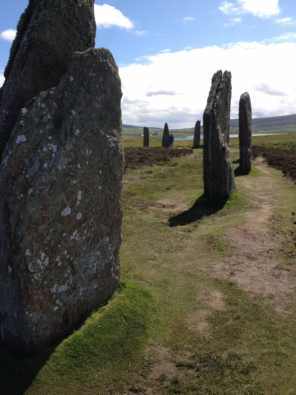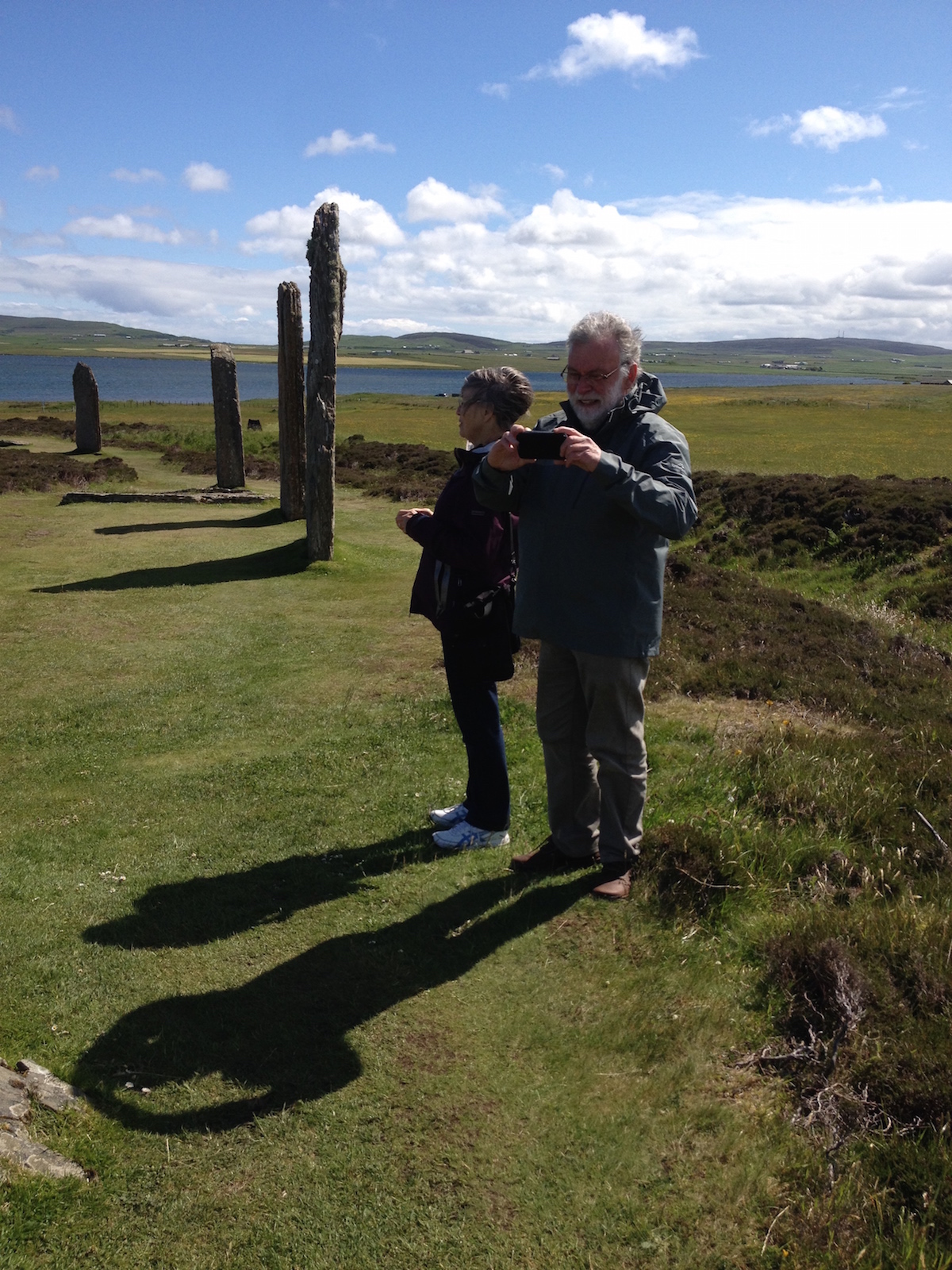 We visited some more neolithic sites yesterday. First stop was The Standing Stones o’ Stenness and the nearby and well-known Ring of Brodgar. Both are stone circles about 5000 years old. The stones are huge and heavy and would have been quite difficult to move and stand upright in their positions. Why did humans build these stone circles? They must performed some kind of ceremonial purpose but what exactly no-one knows.