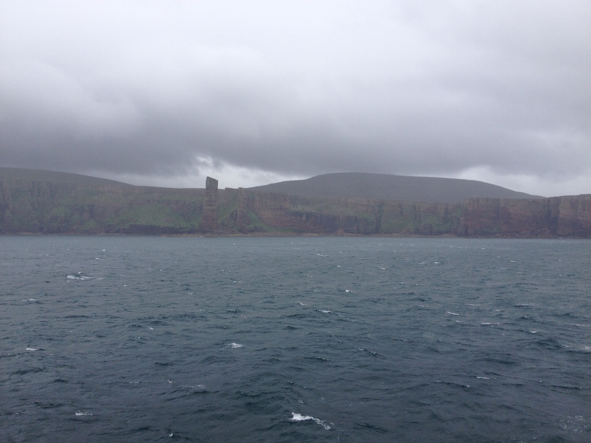 It was raining for most of the crossing but we could just make out the cliffs on the island of Hoy in Orkney: