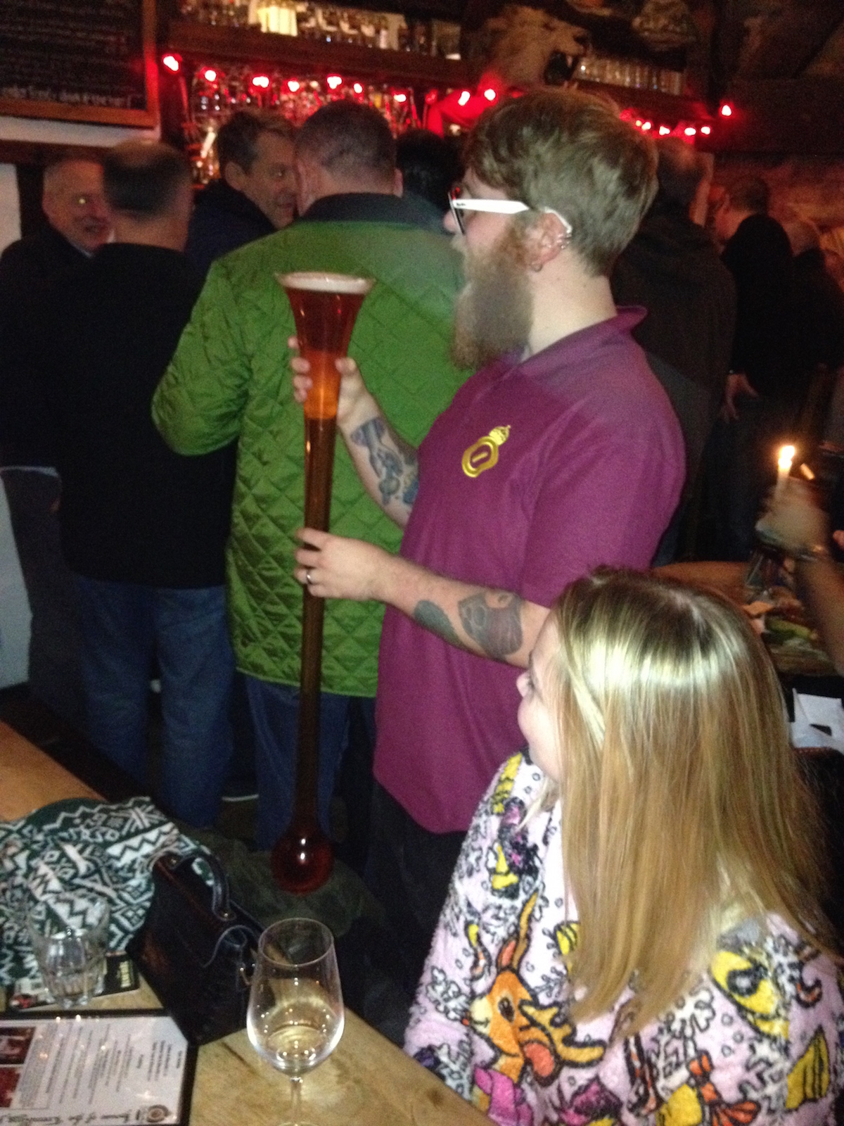 A sign on the wall says the record for downing a yard of ale is less than 5 seconds (I think it was 4.8s but I can’t remember exactly). However I can’t see how that’s possible? A yard of ale is two and a half pints and there’s no way anyone could drink that in 5 seconds or less.