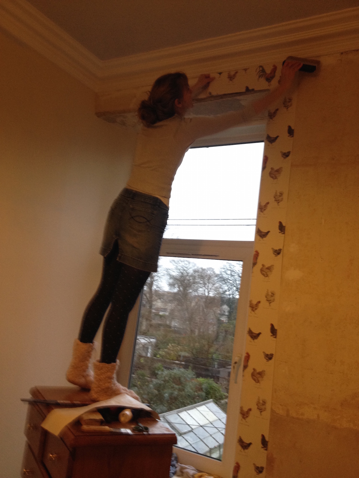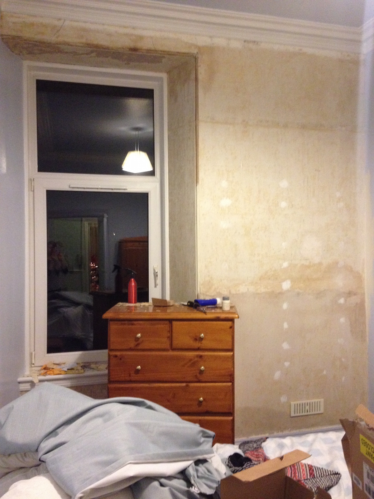 Today I wall-papered the spare bedroom. It was my first attempt at wallpapering and although it was just one wall, it was a very tricky wall because it has a window and lots of corners. Being a Victorian house it’s also a very high wall at more than 3m. Here’s the before pic: