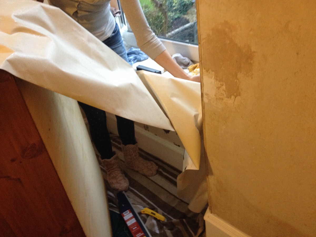 I really fucked up the next bit and the two sheets did not quite meet together at the bottom of the wall. I have solved the problem by putting an item of furniture in front of that part of wall ๐