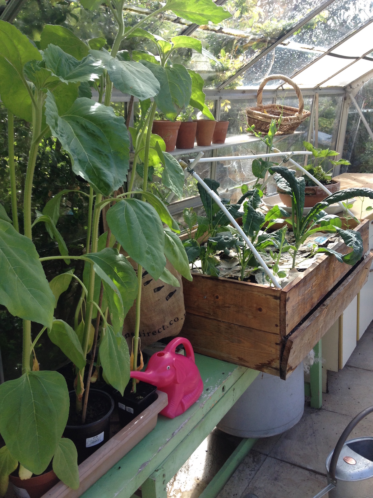 Those are sunflowers on the left in that last photo. I’m not sure what to do with them. I didn’t mean to end up with so many and I think it’s too cold here to put them outside in the garden but they’re getting really tall.