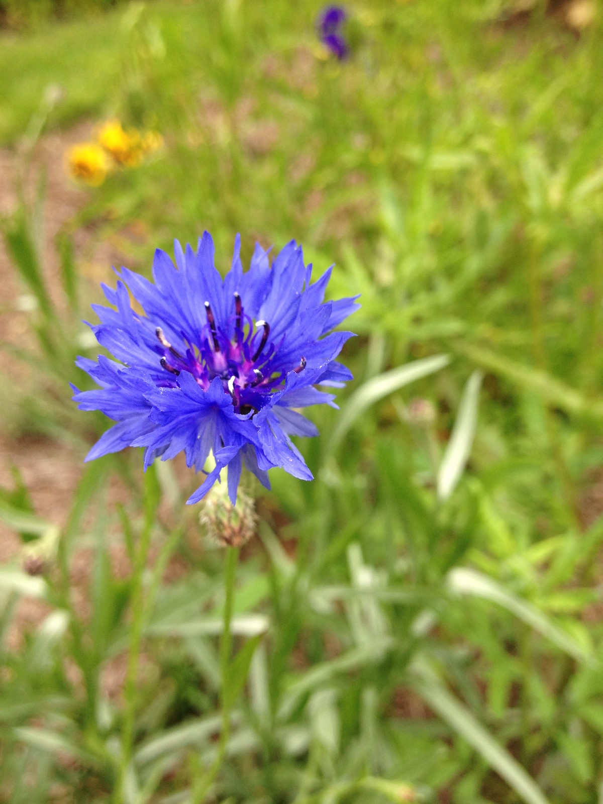 Last winter I scattered wildflower seeds in the gardenย and the annual cornflowers have just started flowering. I’ve never seen them before in my life – the foliage in Brisbane is very different – and they’re just lovely. I also have perennial cornflowersย but they’re not the same. Annual cornflowers are more delicate and a very vivid blue. I like them a lot.