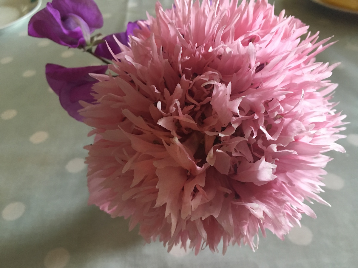 I also took another selfie of my sunflower which is now taller than I am. Five days ago it was about up to my eyes (pic here). Now it’s over my head.ย I’ve discovered there’s a downside to having a new camera with a really good resolution: it shows all the wrinkles, damnit!