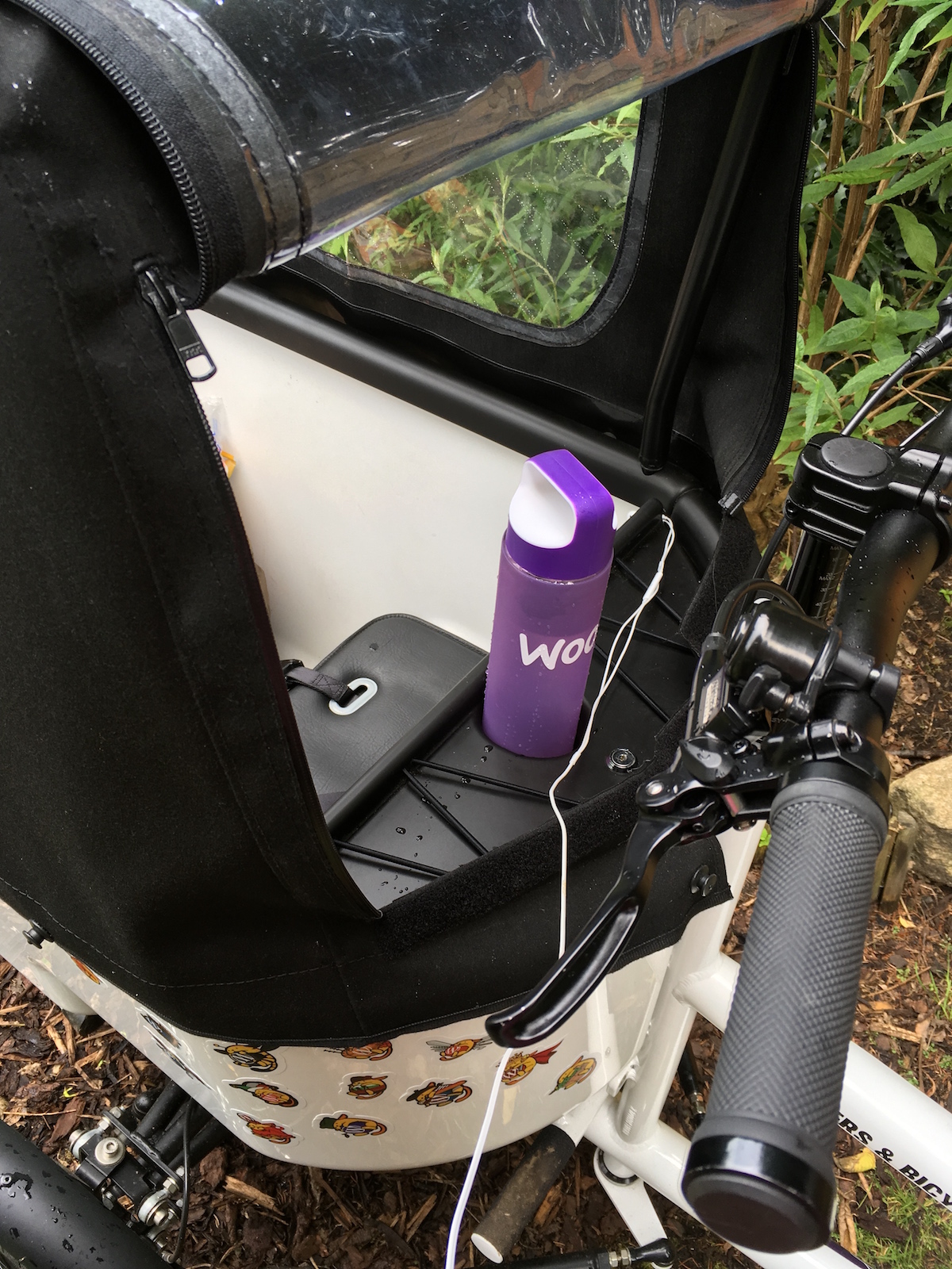 The downside of Harald is that it’s really hard to deploy the stand when the kids are inside. When the bike is empty it’s easy. But with the kids inside I’ve given up now and I stay seated and wait for them to climb out. If they climb out when I’m not on the seat the bike will tip forwards. It’s a design flaw.