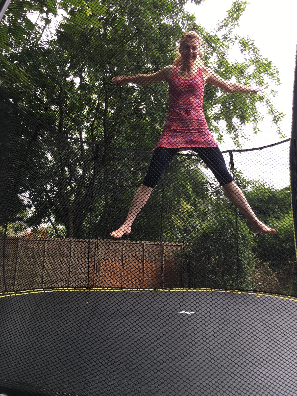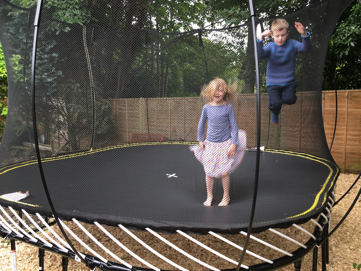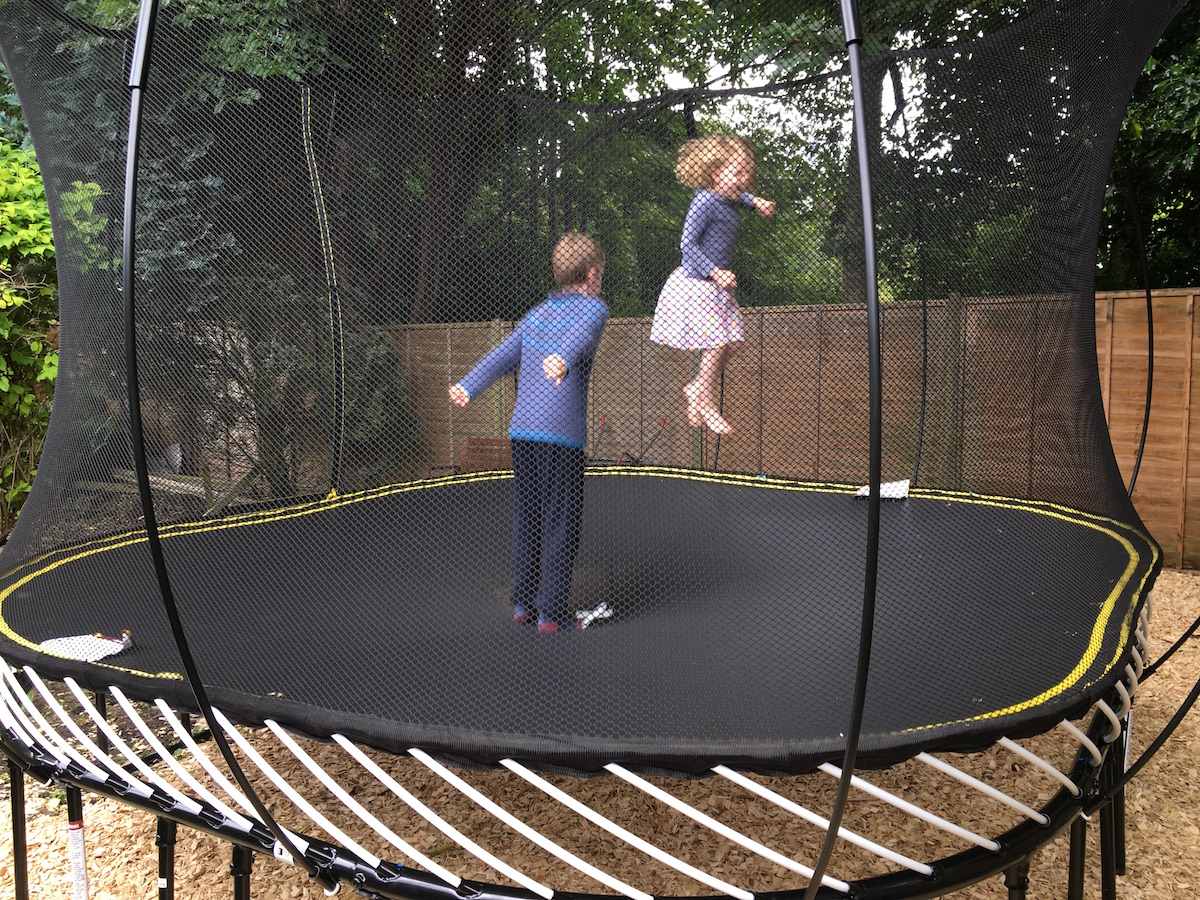 It says in the small print that children should jump one at a time but that’ll never happen. I even jumped with them for a bit and this was probably a bad idea because of the double-bounce effect which was greater when I was on it.ย I haven’t laughed so heartily in a long time. It seems to be good exercise too because I was out of breath butย that might have been because I couldn’t stop laughing.