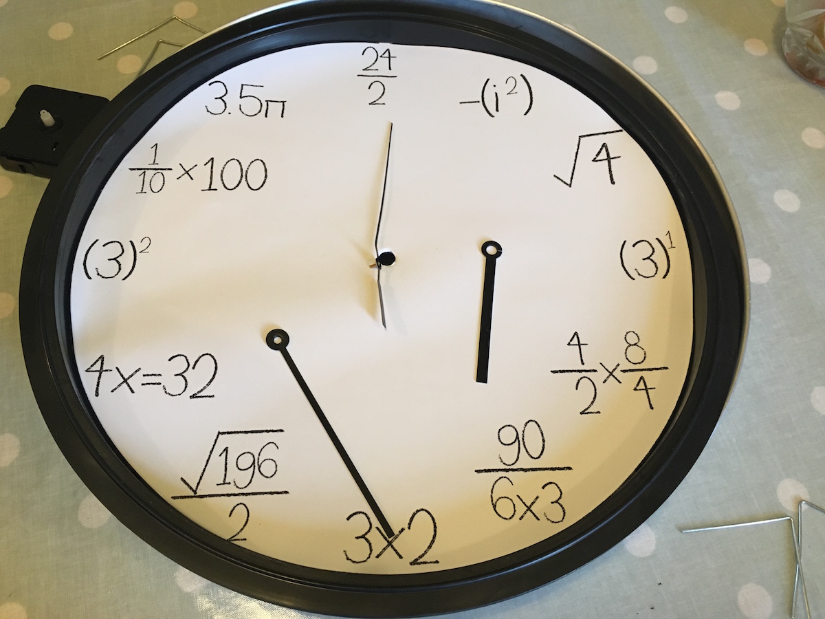Ben and I spent a bit of time yesterday afternoon finding a replacement online and it turns out he’s quite fussy. While he loves the old clock the 11 has always bothered him since it’s not exactly 11 and requires a bit of rounding. And when I found an algebra clock, not unlike the one below, he dismissed it with, “That’s not algebra; that’s arithmetic”.