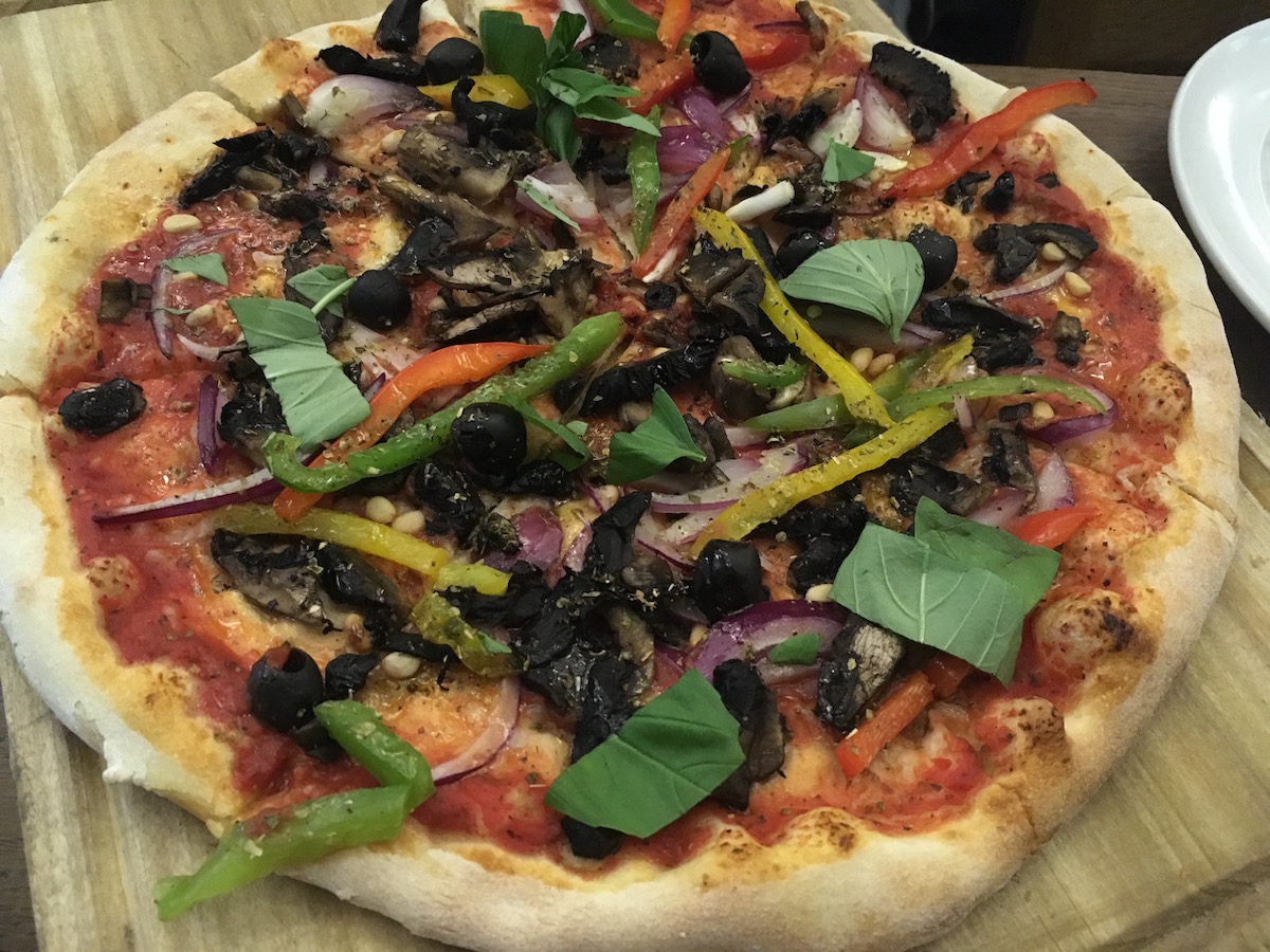It’s a pizza place but not your typical pizza place. The menu is unusual – a lot of thought has gone into creating dishes you won’t find anywhere else. They also cater to all kinds of dietary requirements including vegans which made me happy. There were two vegan pizzas on the menu. I have never seen that anywhere else, ever. They also had vegan steak & mash. Here’s the description of it on their specials board: