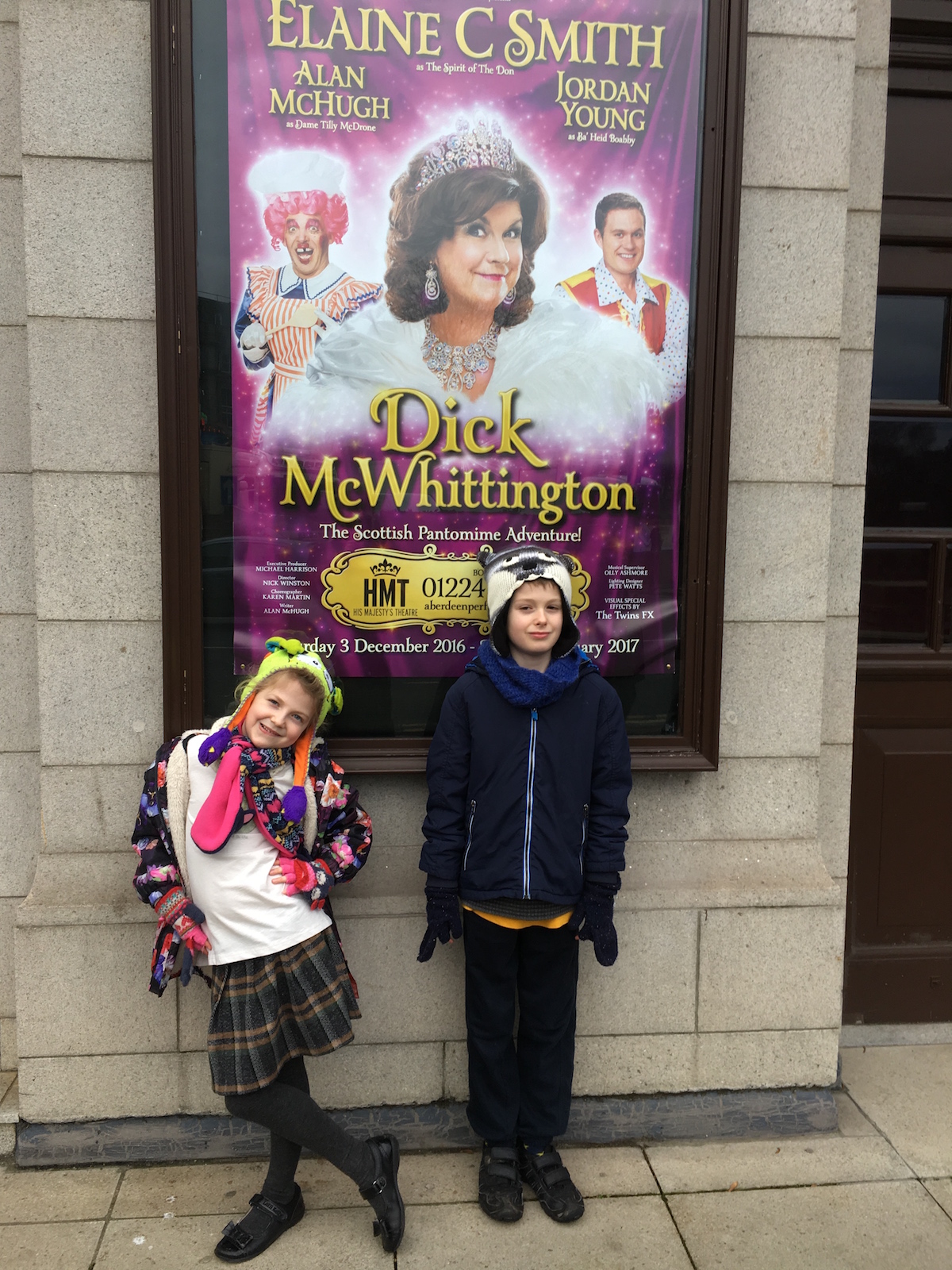 We saw Dick McWhittington, ย the Scottish version of Dick Whittington. There was singing and dancing, lots of slap-stick comedy, plenty of politically incorrect references, toilet humourย and Benny Hill-type jokes.ย The kids loved it so much asย did we. There was even a segment about Donald Trump which, I’m sure you can guess, was not complimentary.ย It’s a British tradition to go to the Pantomime with the family in December and I think we’ll make it our tradition too. I love living here so much and I especially love living in Scotland.