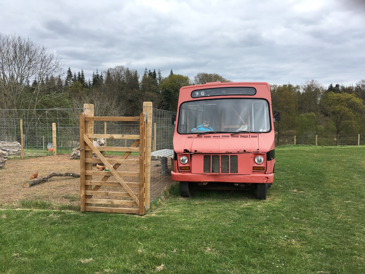 There’s a toilet and shower in what was once the driver’s seat, hence my title, peeing in the driver’s seat. There are also chickens and we can help ourselves to eggs. The chickens have their own bus to sleep in.