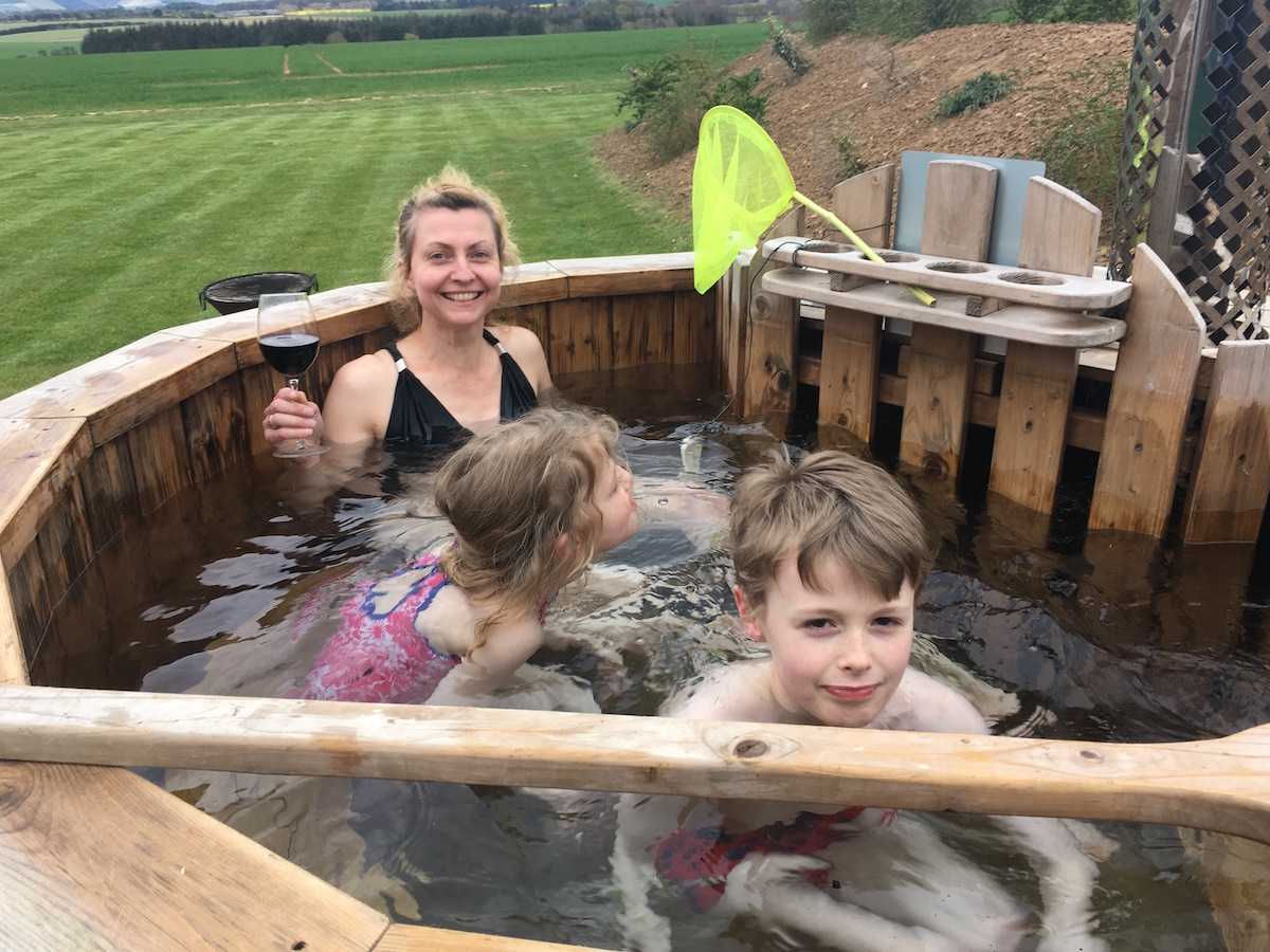 We are glamping in a bus and it’s heaven. We have our own wood-fired hot tub in a peaceful rural setting of wheat fields and rolling hills. It doesn’t get much better than this. Teetotal me even enjoyed a South African organic red with no added sulphur. This is my kind of camping.