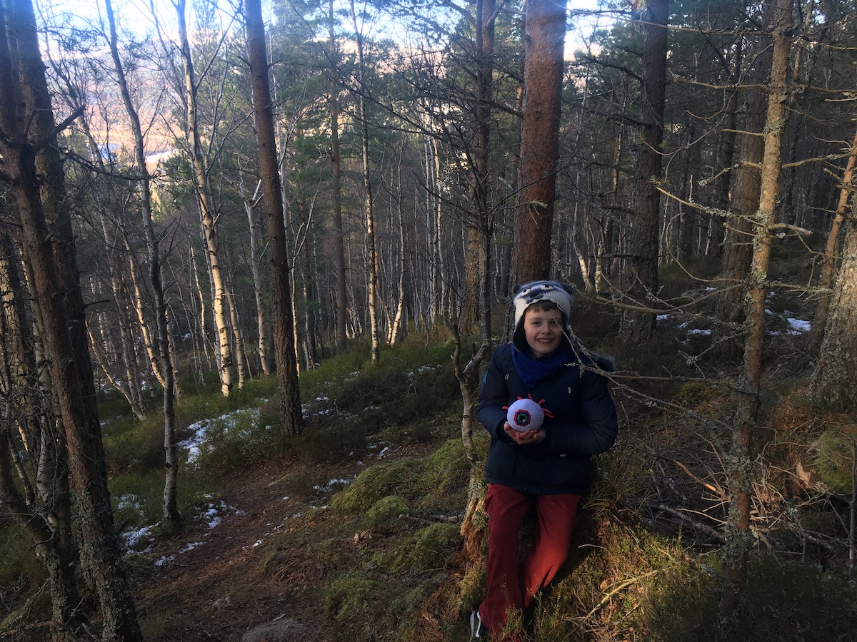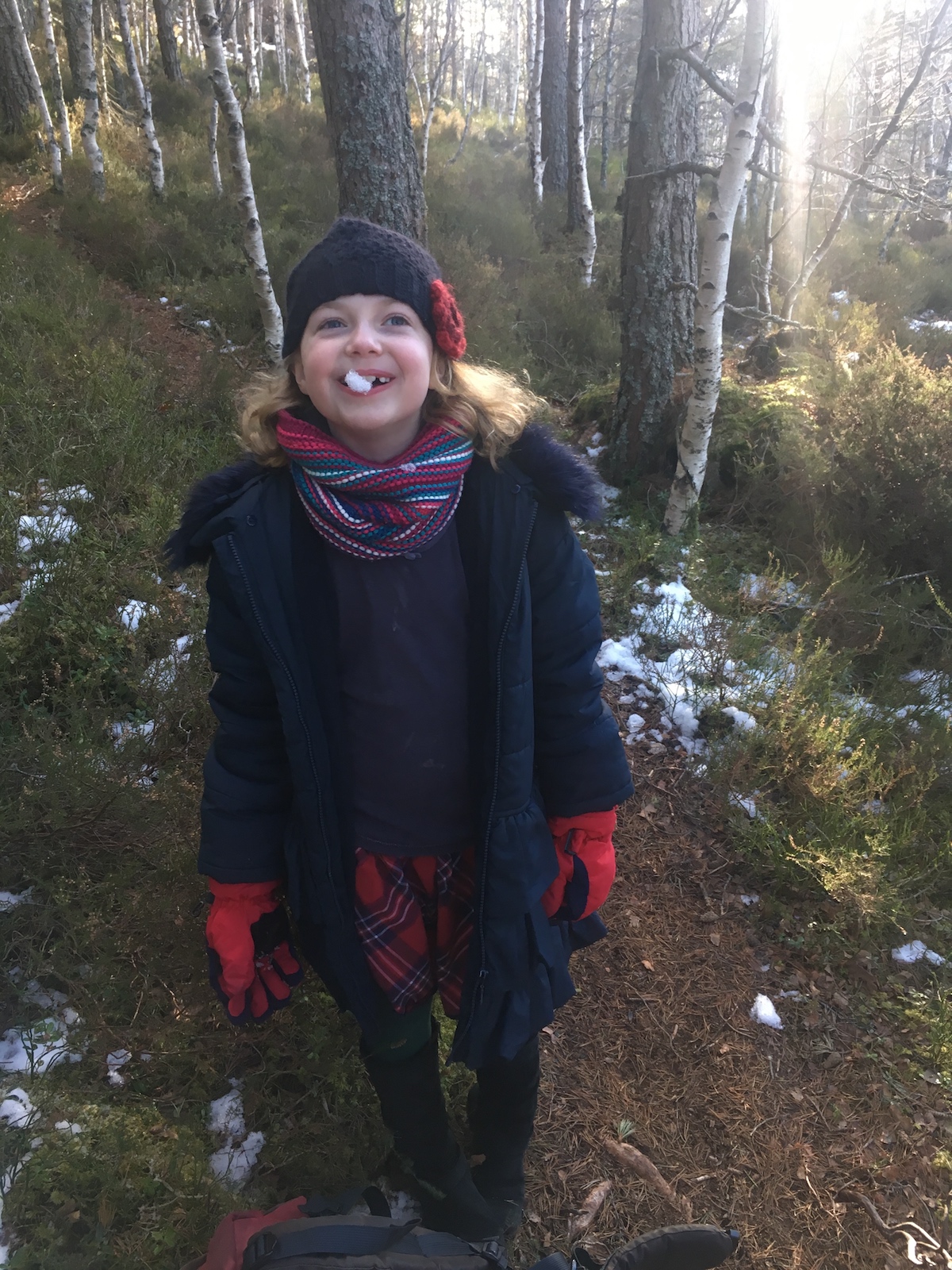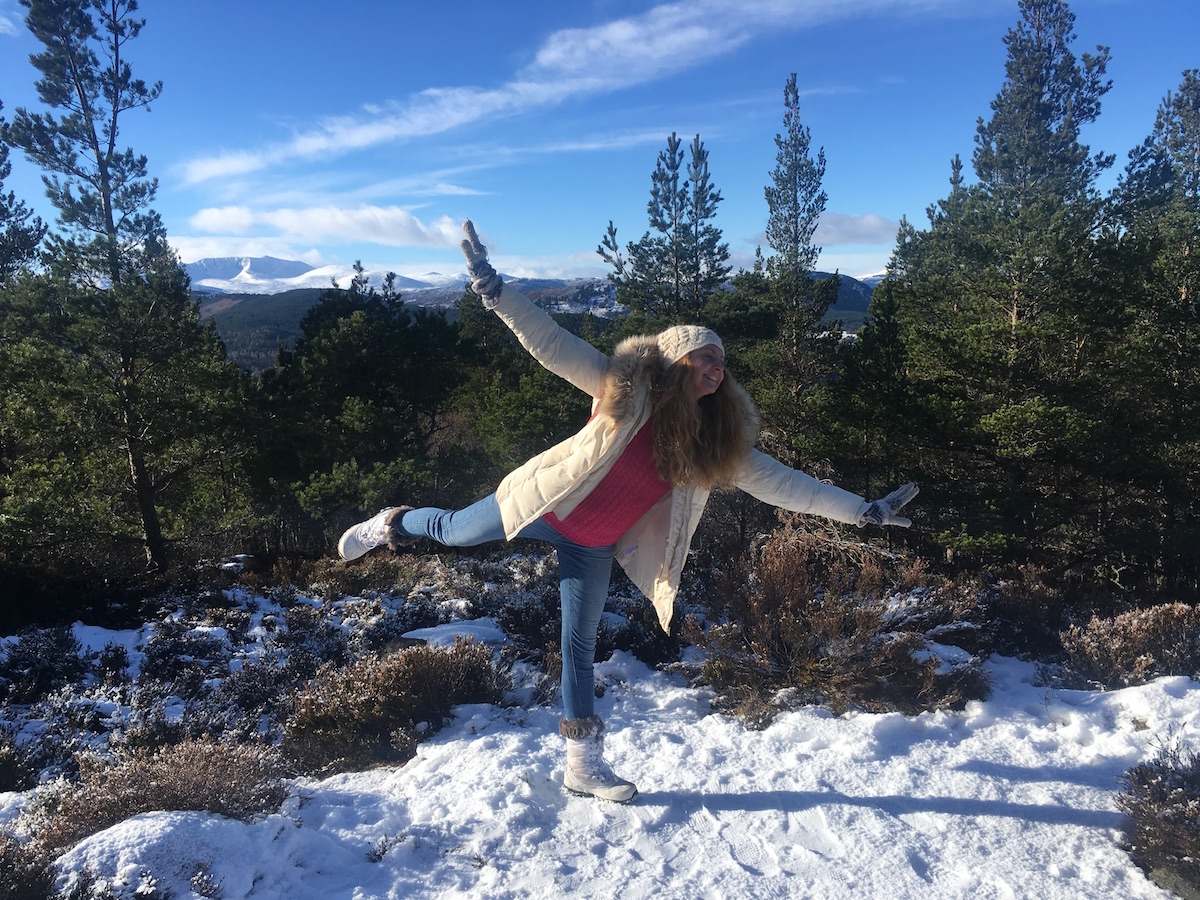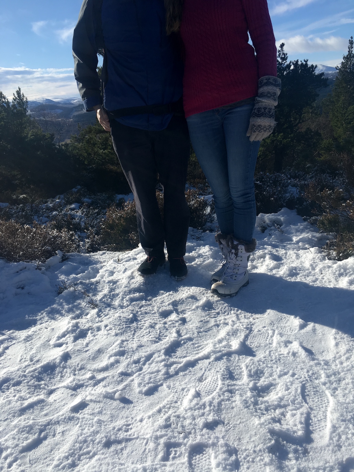 Today we walked up Craigendarroch which means hill of oak (craig = hill or crag/rock, and darroch = oak). It’s a steep, rocky hill overlooking the village of Ballater. From the ground it doesn’t look very inviting because of the rocky cliffs and indeed the women behind the reception desk in our hotel tried to talk us out of it. “Too steep and icy”, they said. We decided they didn’t look like hill walkers and so we went anyway. It turned out to be pretty easy and not particularly treacherous at all. It also didn’t take very long – probably about a two-hour walk up and back. The views from the top are magnificent. I’m now wondering why we haven’t done it before. If you’re in the area then I highly recommend it.