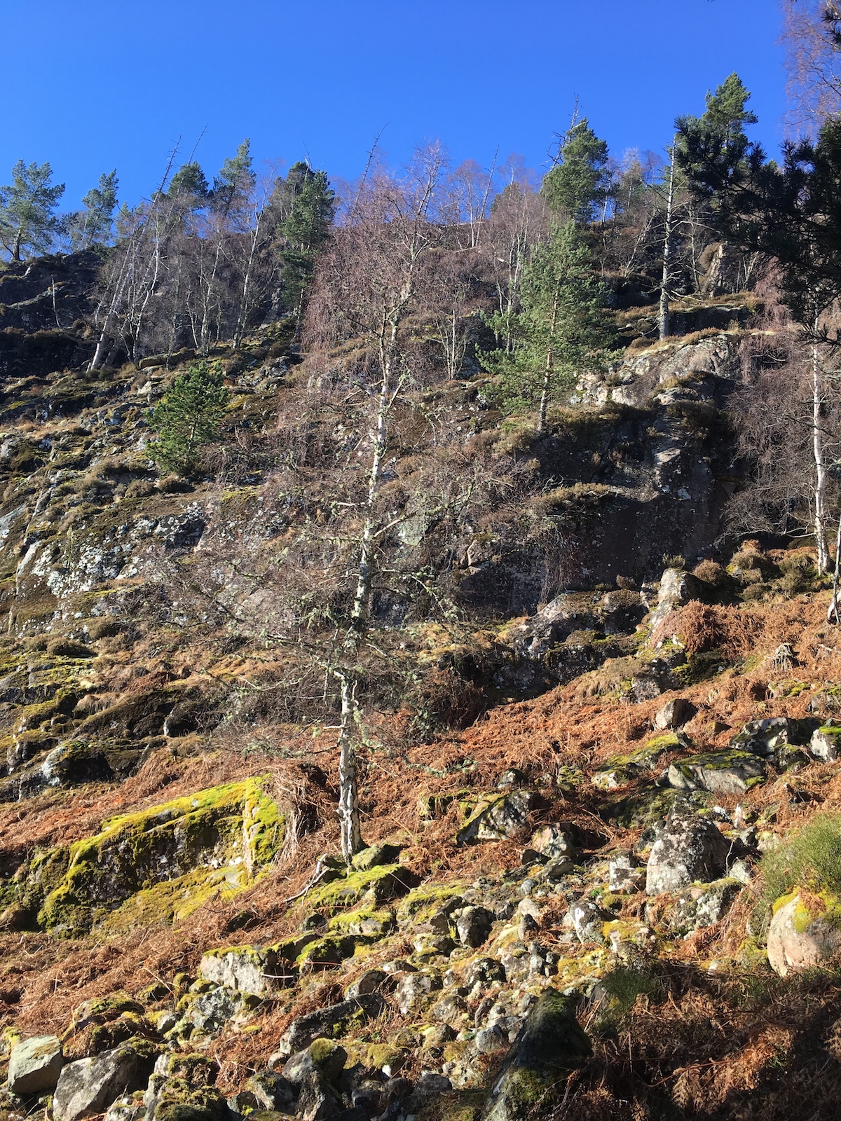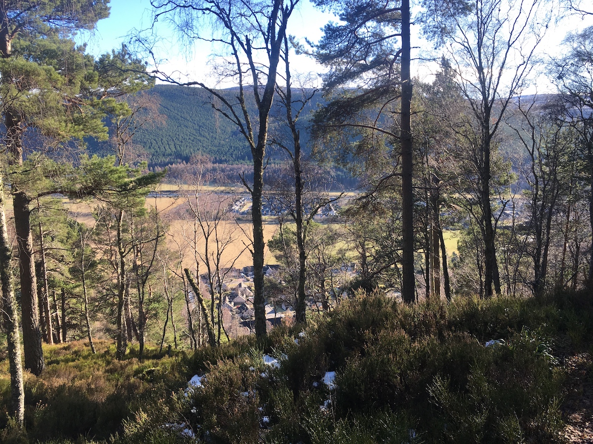 There are nice views of Ballater on the way up. The village suffered terrible flooding at the end of 2015 and from up here it’s easy to see why. The whole area looks like a flood plain.