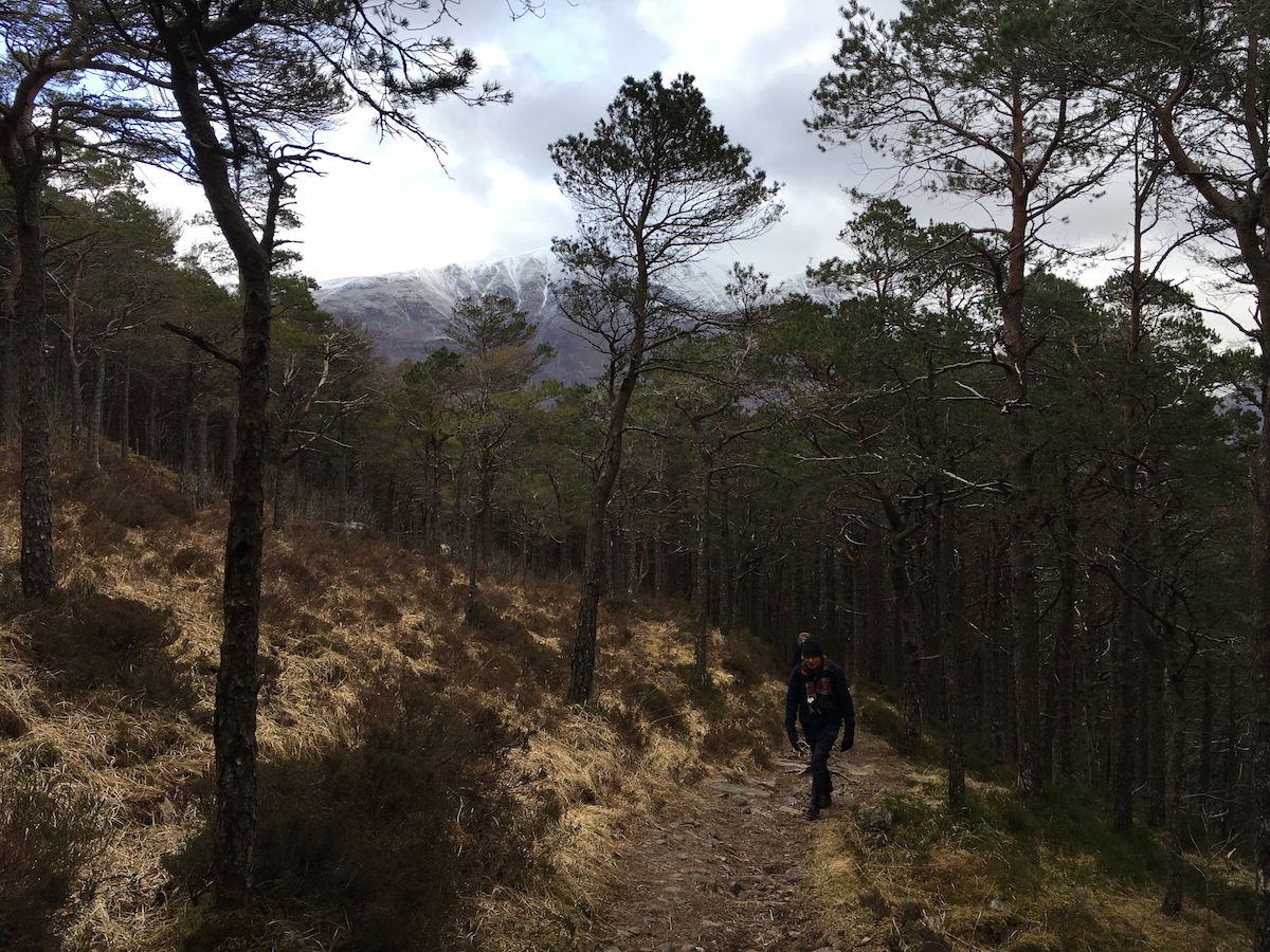 Just behind the Inn and Hotel is Beinn Damh, a mountain of about 980m. We didn’t walk the whole way, just to the tree line for the wonderful views. It’s a very good track, initially through forest, that follows a gorge with a stream at the bottom and part-way up there’s a waterfall.
